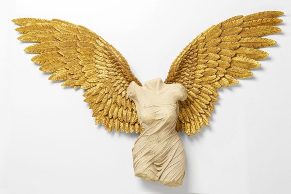 Erleben Sie mit der XXL Wanddekoration "Gela Angel" in Weiß-Gold eine einzigartige griechische Skulptur mit detailgetreuen Engelsflügeln und Wow-Effekt.